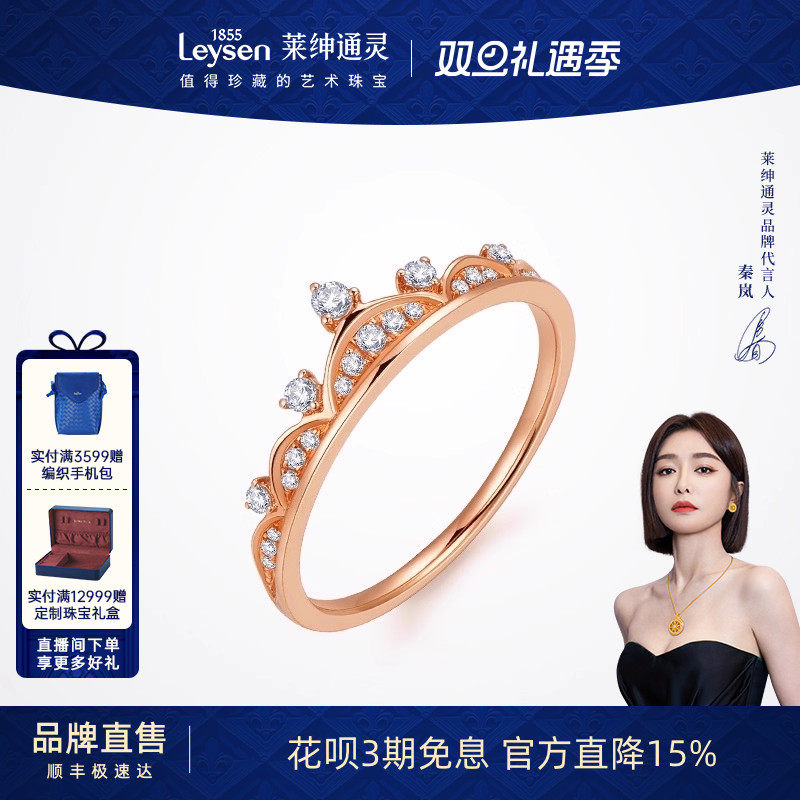 莱绅通灵珠宝 公主冠冕 18k金钻石戒指 求婚结婚王冠皇冠戒指女