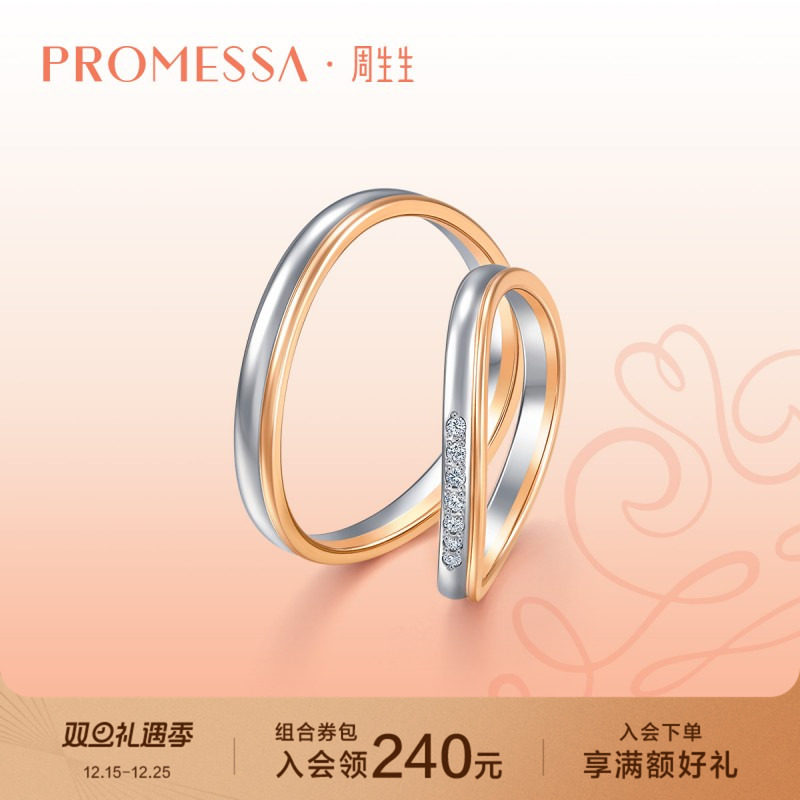 周生生PROMESSA小皇冠18K黄金及950铂金莫比乌斯环钻石戒指92960R