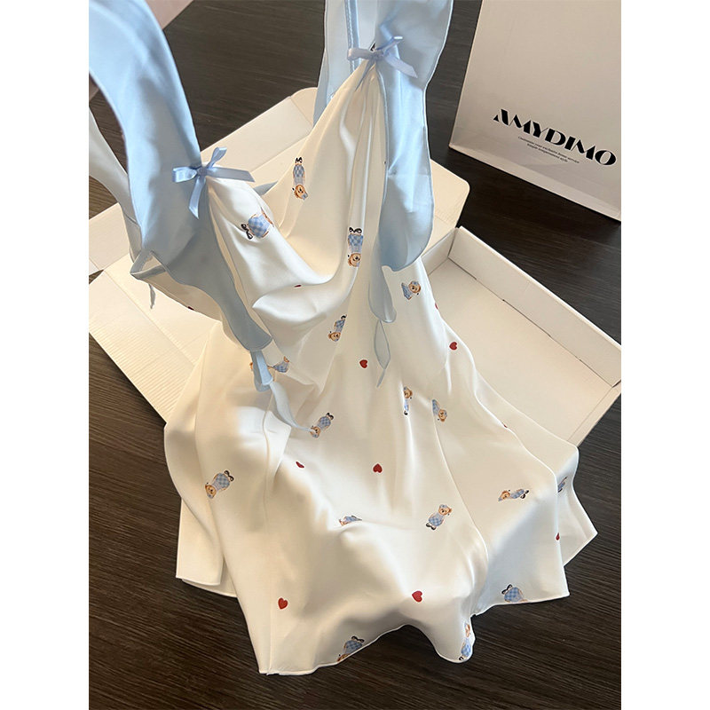 甜美风小熊印花吊带睡裙少女夏季冰丝纯欲夏天性感睡衣家居服套装