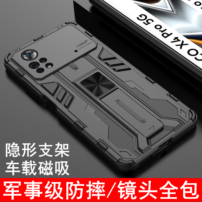 适用于小米POCO X4Pro手机壳镜头全包小米poco M4Pro保护套5G气囊防摔磨砂软硬壳POCO X4创意磁吸带隐形支架