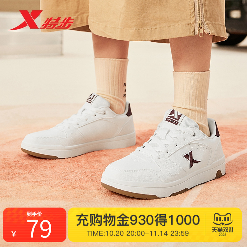特步苜白3.0板鞋女鞋2025秋冬休闲运动鞋男鞋情侣百搭小白鞋