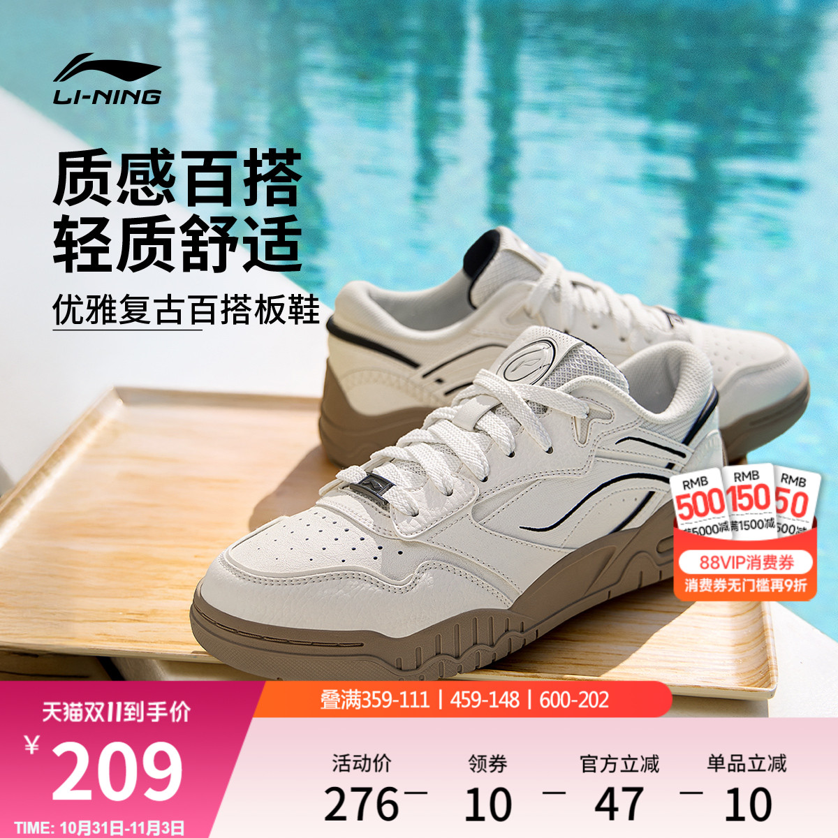 李宁月璃丨板鞋男鞋秋冬新款小白鞋复古休闲鞋轻便软底运动鞋子男
