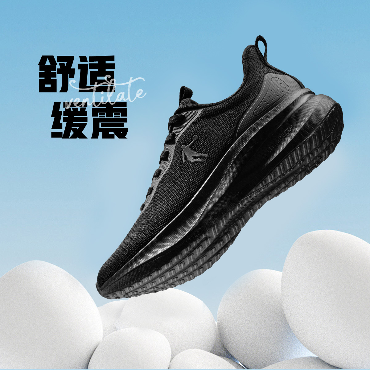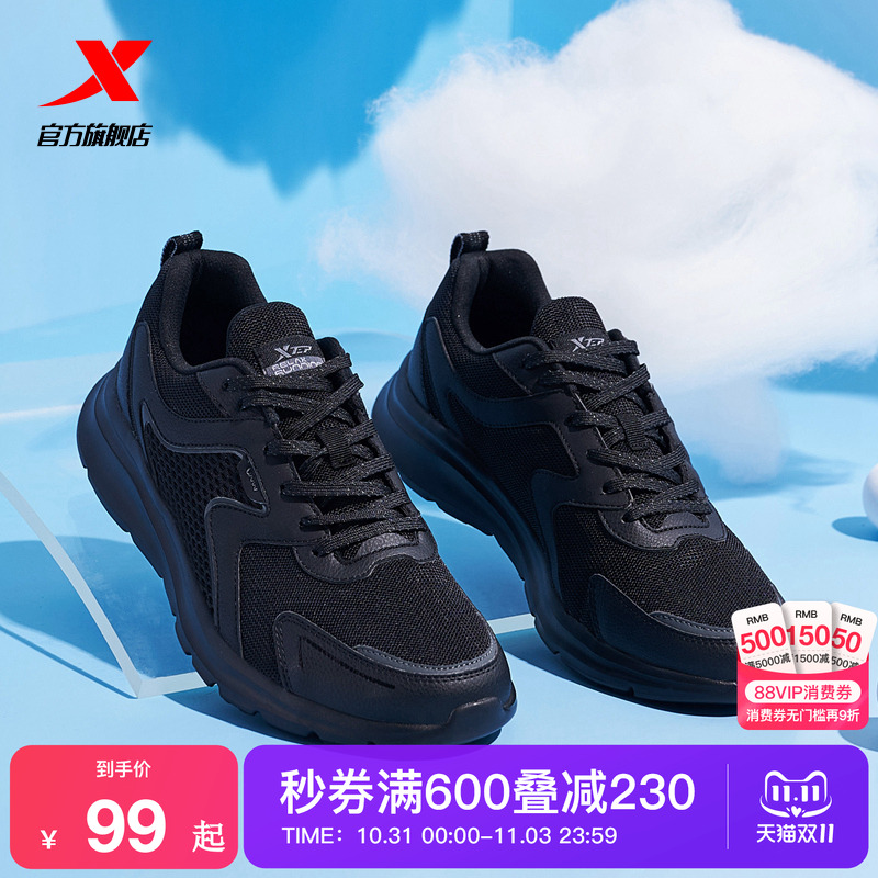鸿星尔克运动鞋秋冬新款男鞋软底跑步鞋网面透气休闲鞋黑色爸爸鞋