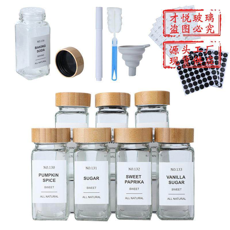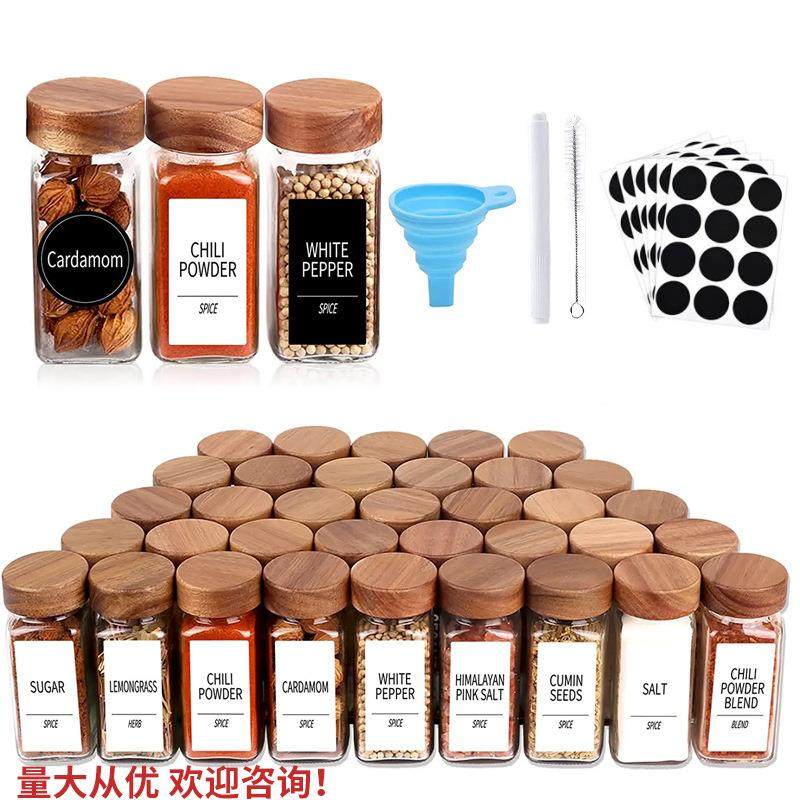 亚马逊方形调料瓶厨房玻璃调料罐烧烤调料瓶竹木盖铝盖孜然调料罐