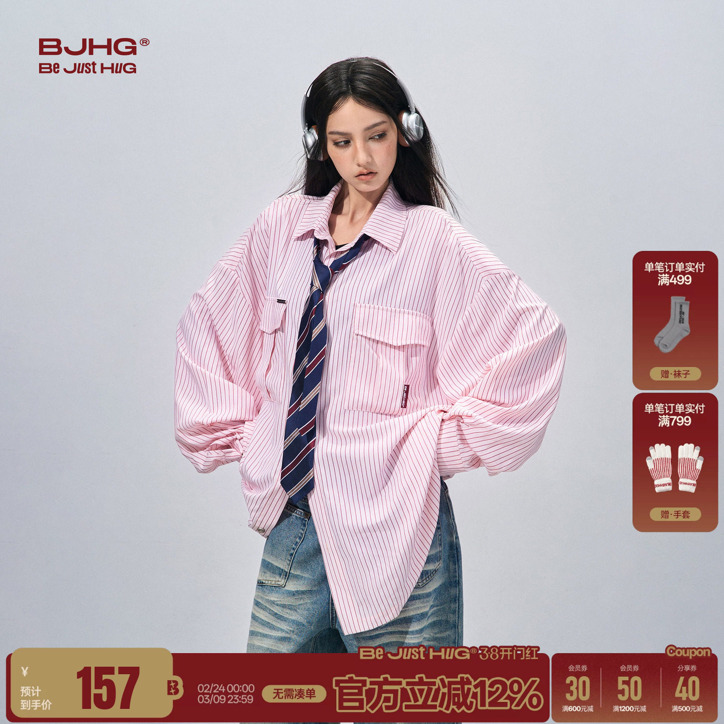 BJHG不计后果条纹衬衫男女款春季美式宽松休闲高级感情侣衬衣外套