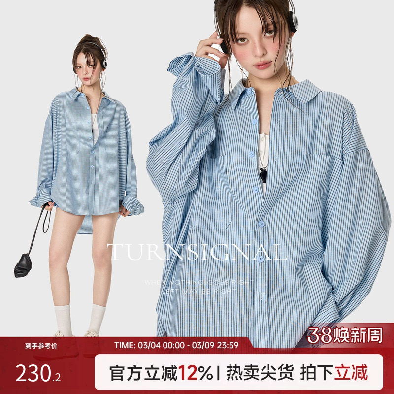 TurnSignal潮牌条纹衬衫女春季2026新款休闲百搭宽松长袖衬衣上衣