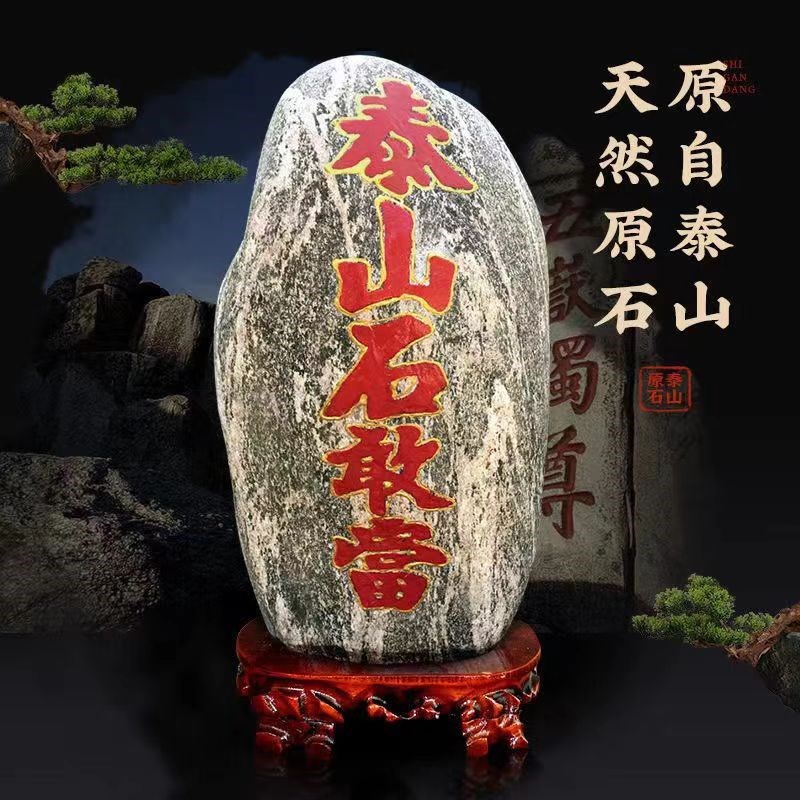 正宗泰山石敢当天然泰山石原石客厅办公室靠山石摆件刻字石头底座