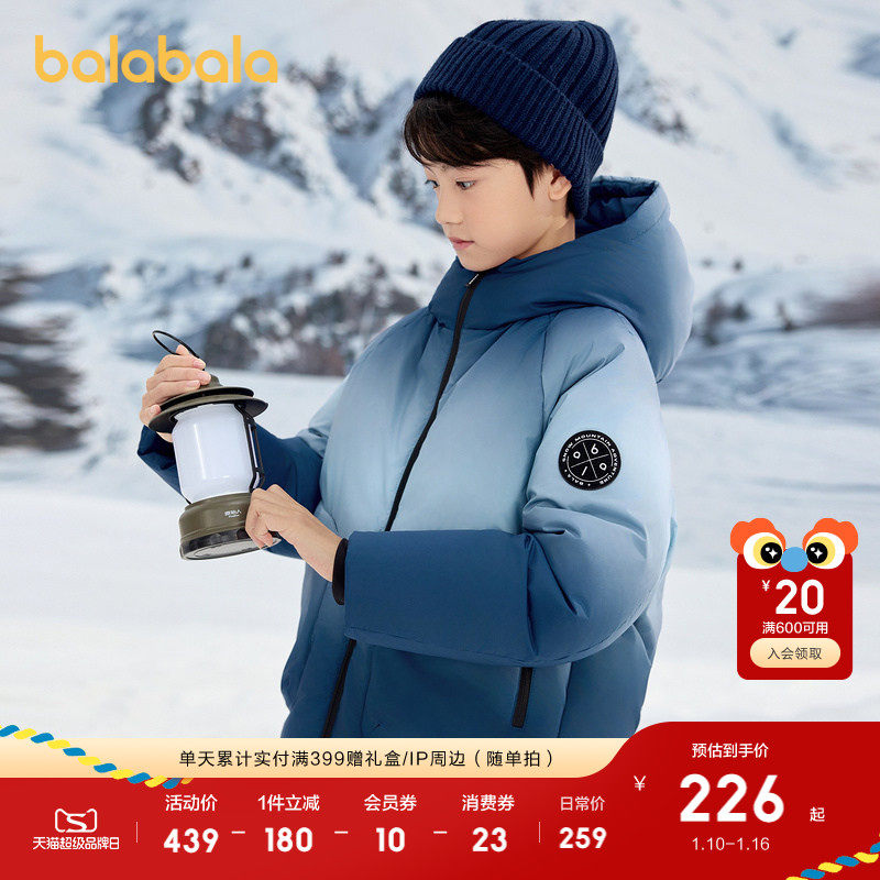 巴拉巴拉童装儿童羽绒服冬季男童中大童保暖渐变外套厚款时尚舒适