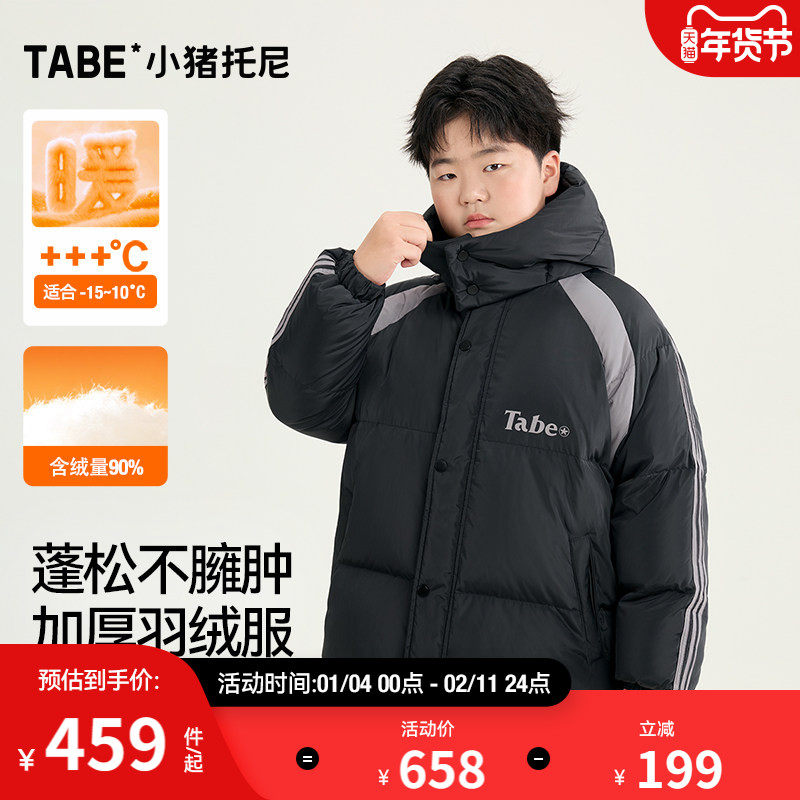 巴童巴拉中大童羽绒服2025冬新品男童女童中长款连帽保暖加厚外套