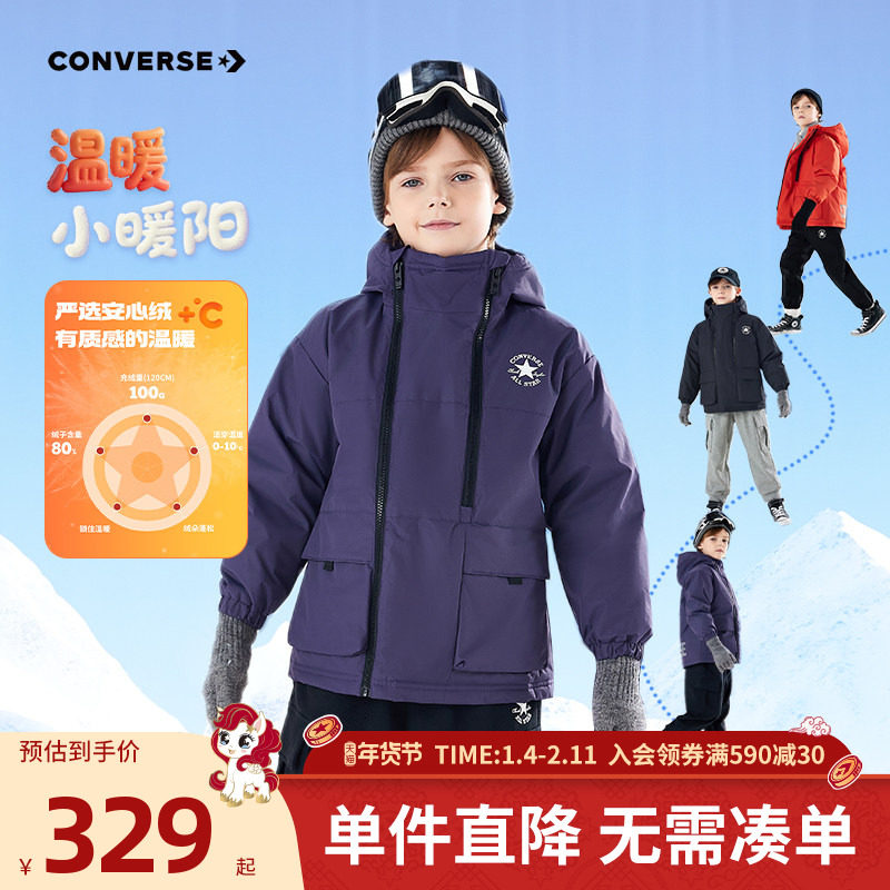 匡威男童羽绒服2025冬季新款中大童加绒加厚连帽短款上衣外套