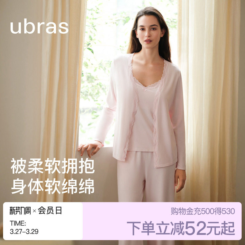 ubras软绵绵家居服女款睡衣羽绒化吊带开衫三件套可外穿春夏季