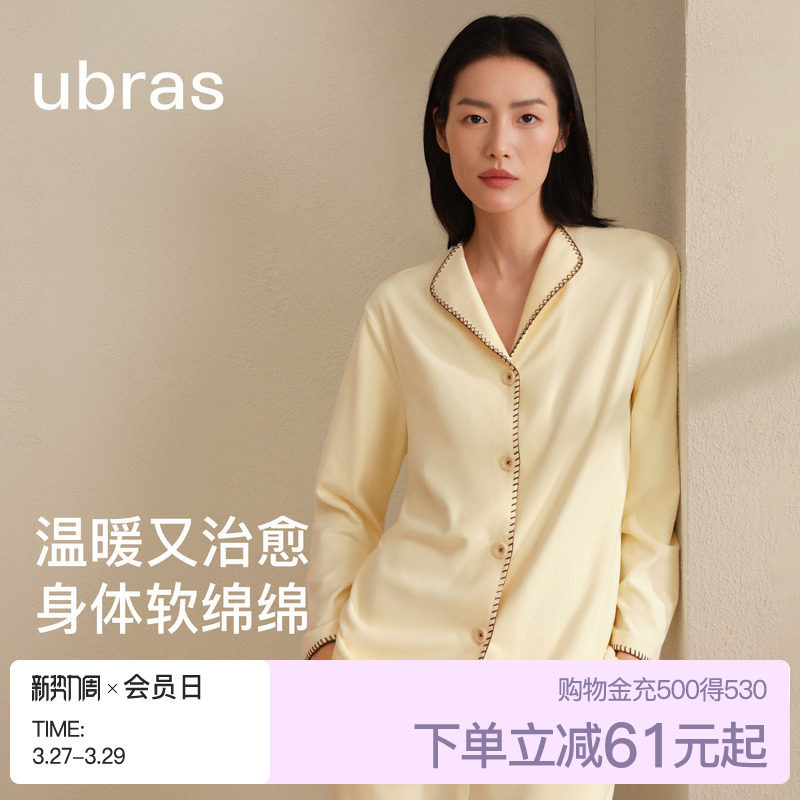 刘雯同款ubras软绵绵家居服奶酪绒衬衫领睡衣女男情侣套装抗菌