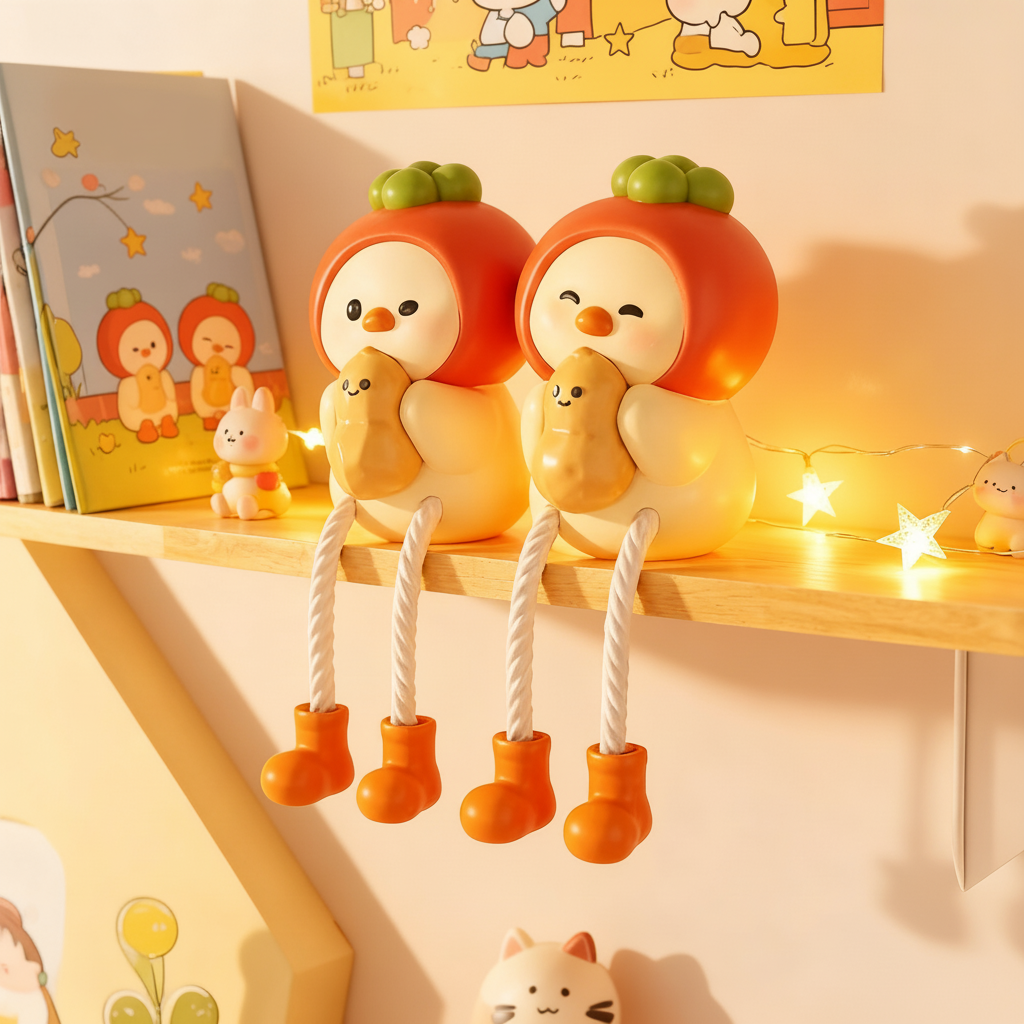 可爱鸭子情侣吊脚娃娃摆件女生儿童房卧室一字板洞洞开放格装饰品