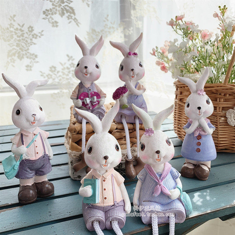 可爱呆萌上学兔子树脂情侣吊脚娃娃摆件客厅桌面阳台户外家居装饰