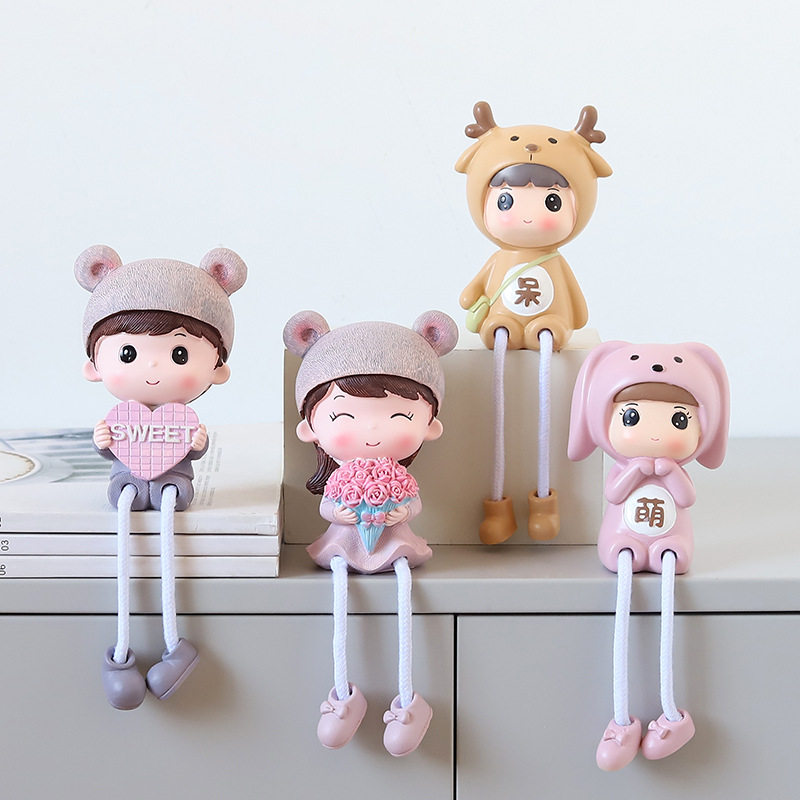创意卡通吊脚娃娃摆件可爱客厅玄关电视柜装饰书柜书架办公室摆设