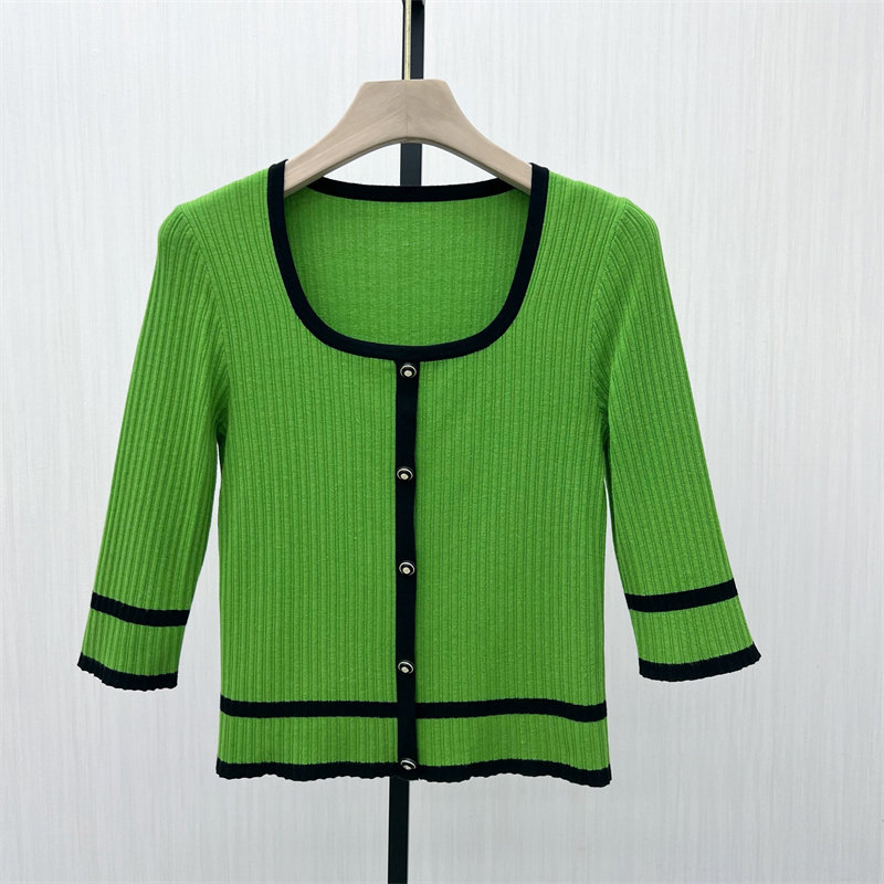 实用到犯规!肯豆出街五分袖短款针织开衫女排扣紧身弹力针织衫潮