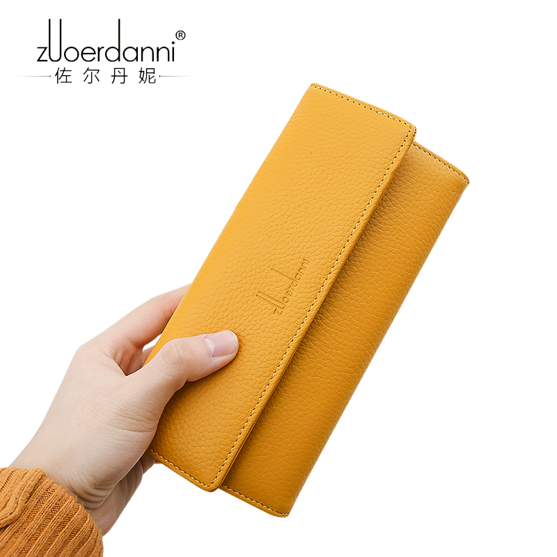 佐尔丹妮钱包三折女士钱包女卡夹长款韩版时尚多功能黄色牛皮钱夹