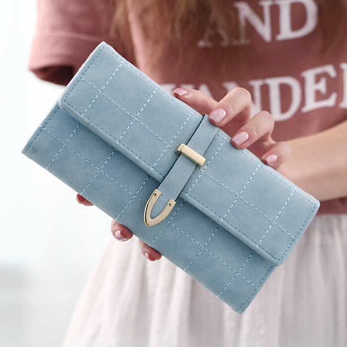 新款女士钱包女长款三折真皮质感韩版女款钱夹牛皮质感夹复古手拿