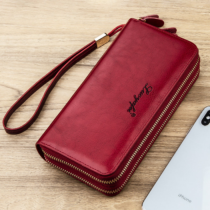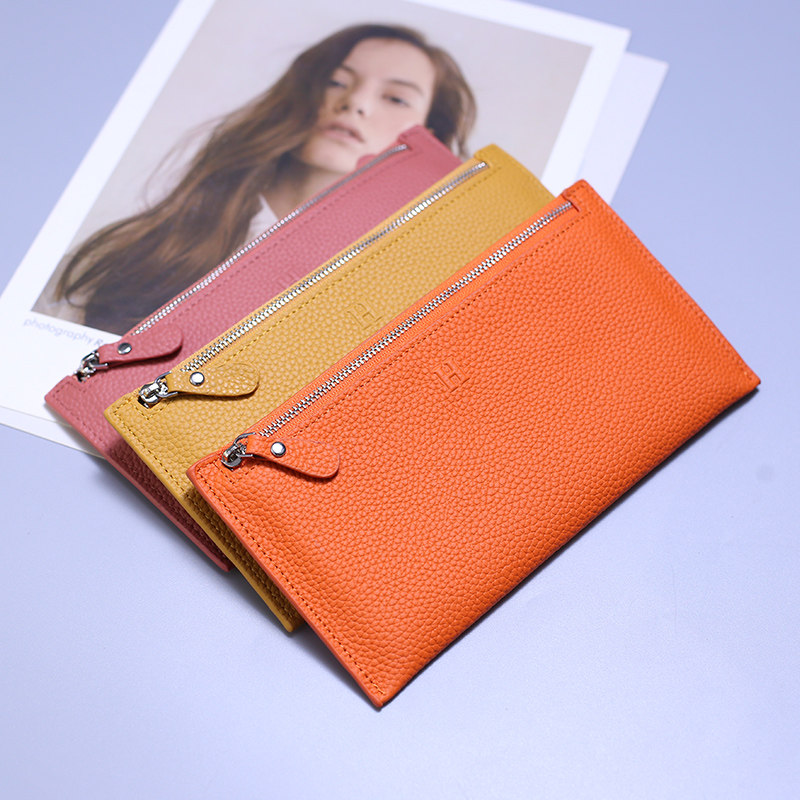 韩版新款长款钱包女超薄简约休闲拉链钱夹放手机植鞣牛皮质感钱夹