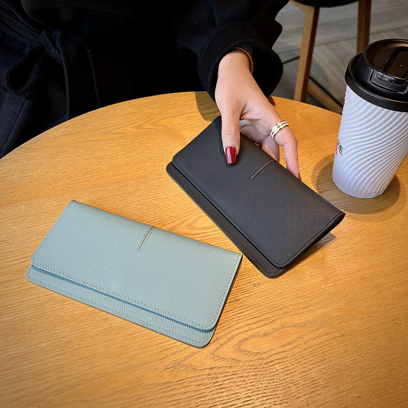 新款韩版软牛皮质感长款钱包女超薄简约休闲拉链钱夹放手机包卡包