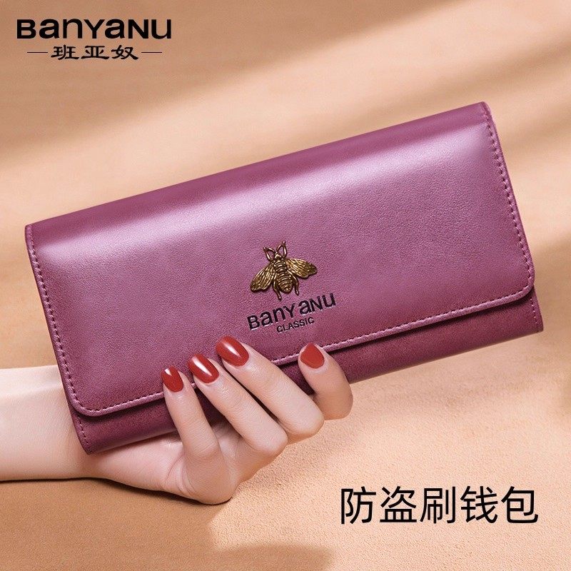 班亚奴2025新款女士钱包女长款头层牛皮大容量三折真皮钱夹潮韩版