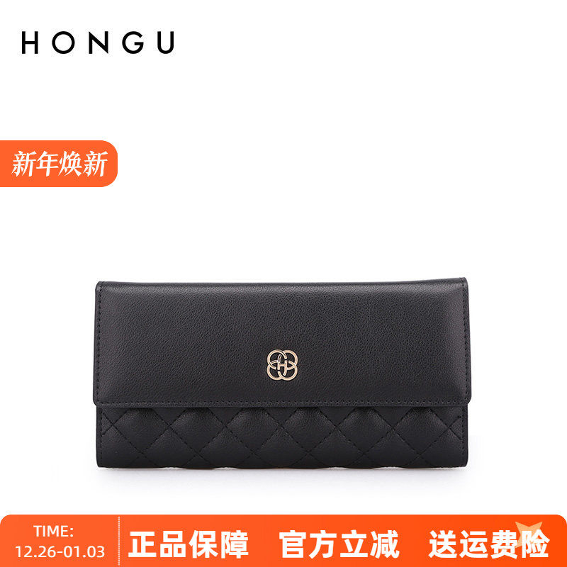 红谷新款牛皮钱包女长款韩版简约钱夹三折多功能皮夹小手包手拿包