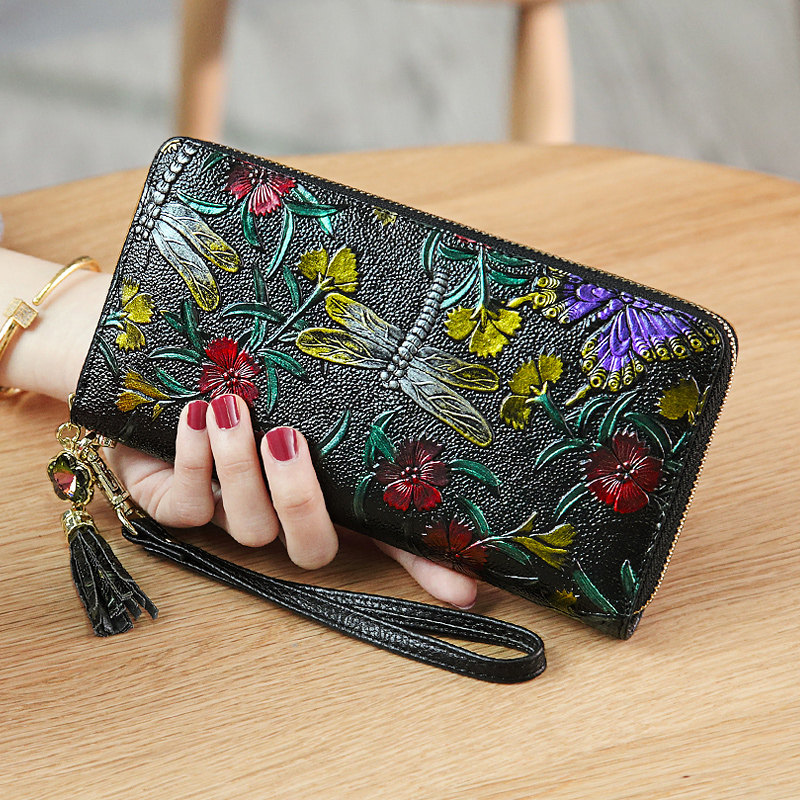 女士钱包女长款真皮多卡位大容量手拿包2024新款时尚韩版牛皮钱夹