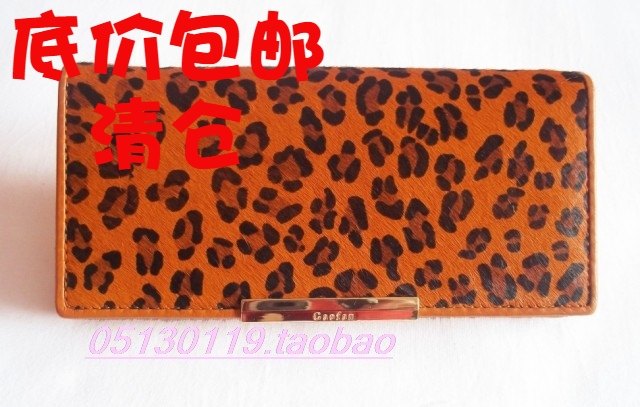 高帆正品清仓女式时尚钱夹韩版马毛豹纹牛皮皮夹长款真皮女士钱包