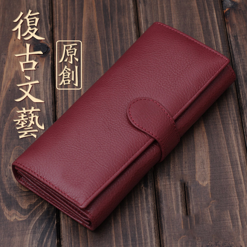 2025复古女士钱包韩版时尚手机包头层牛皮rfid长款钱包purse外贸