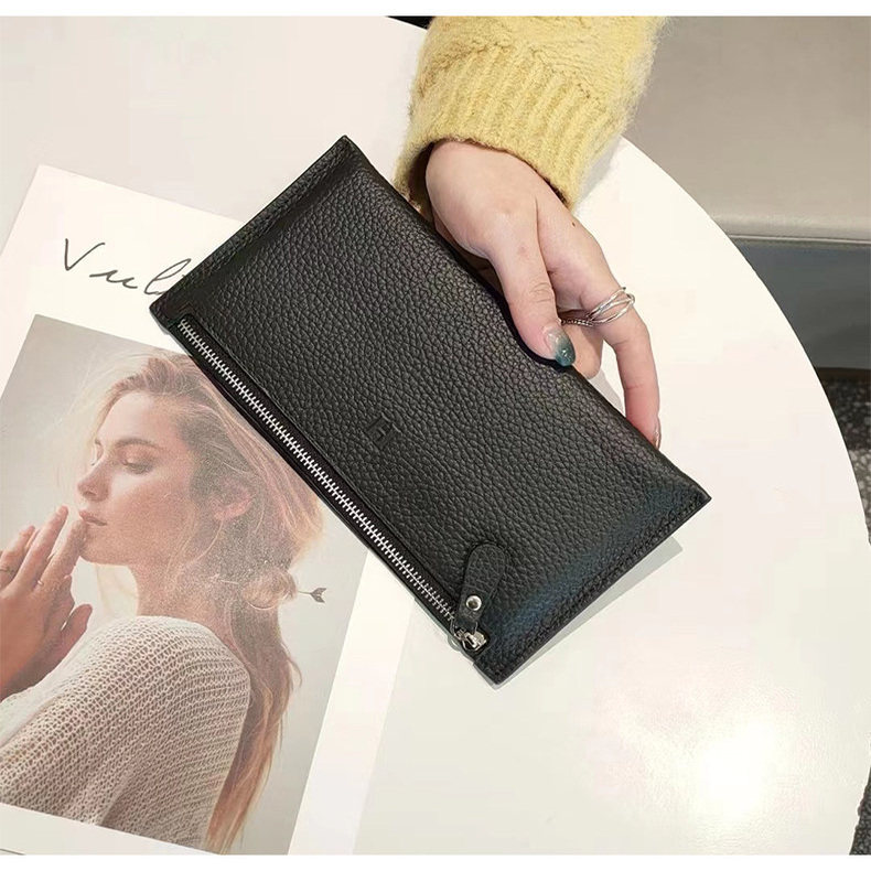 真皮长款钱包女超薄2023韩版新款简约休闲拉链钱夹手机包软牛皮夹