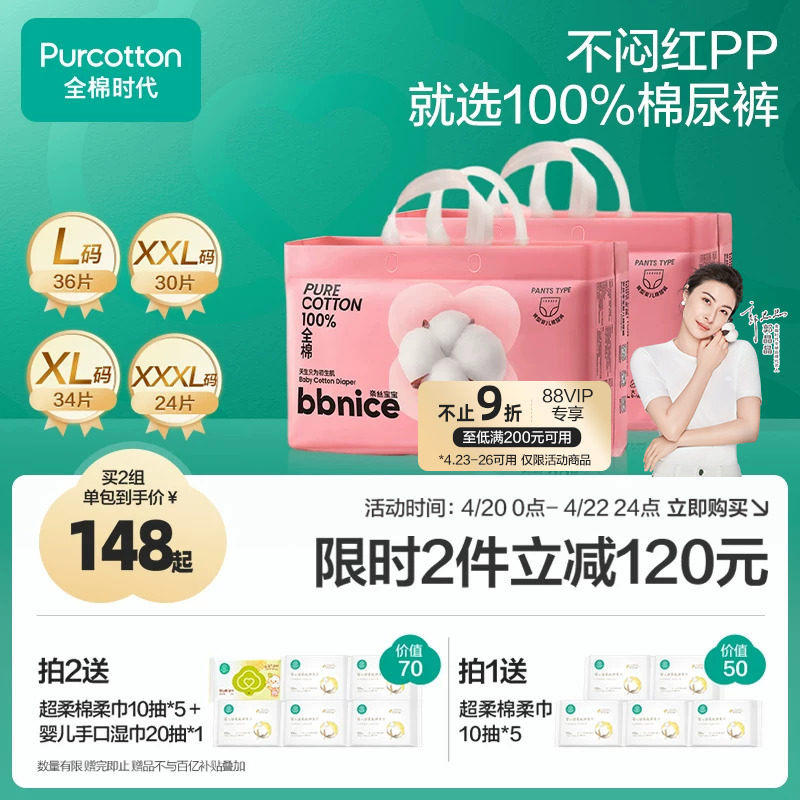 全棉时代新生儿纸尿裤拉拉裤超薄透气婴儿男女宝宝尿不湿尿片任选
