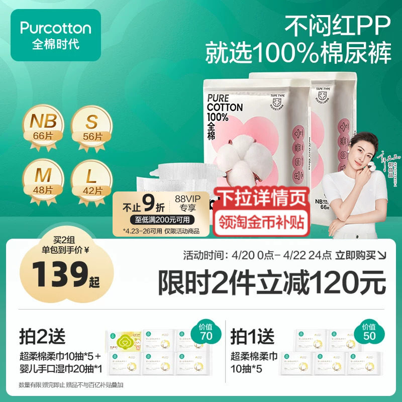 全棉时代新生儿纸尿裤超薄透气婴儿男女宝宝尿不湿尿片任选NB-3XL