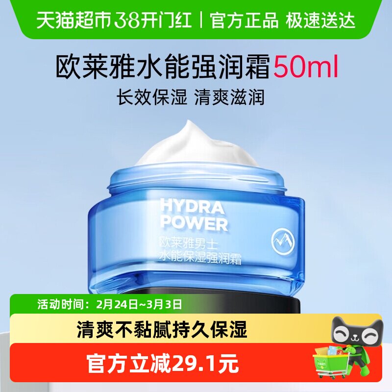 欧莱雅润肤乳液男士水能保湿滋润乳面霜秋冬补水擦脸油脸部50ml