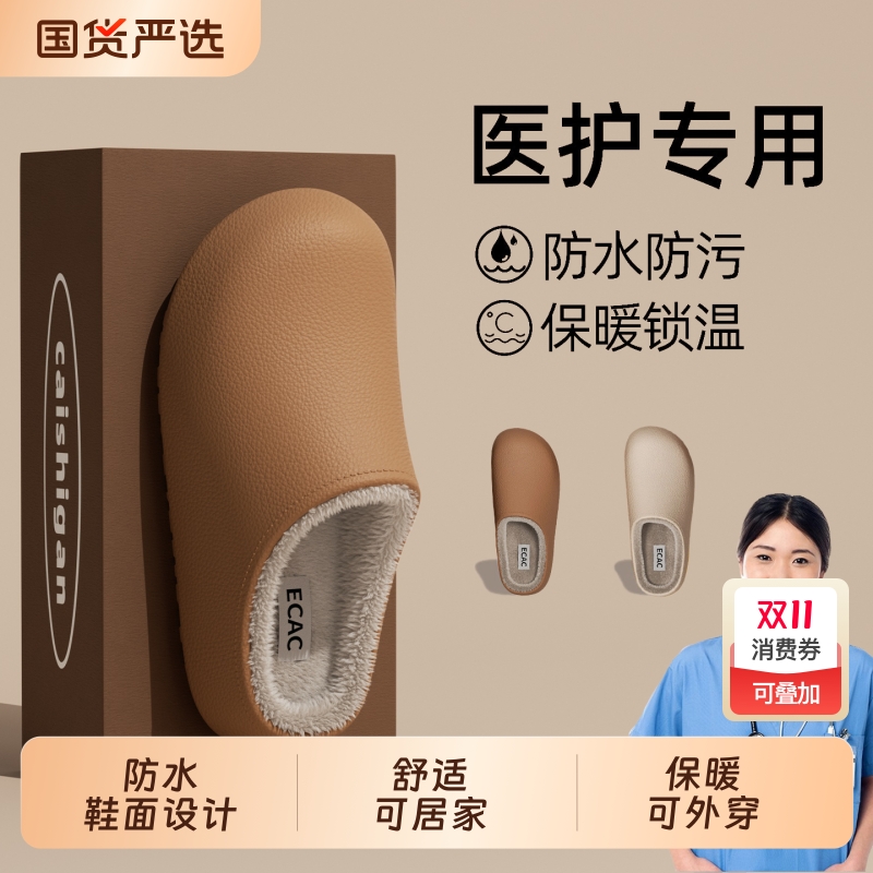 手术室防水棉拖鞋女冬季2025新款室内家居防滑厚底医护棉鞋男外穿