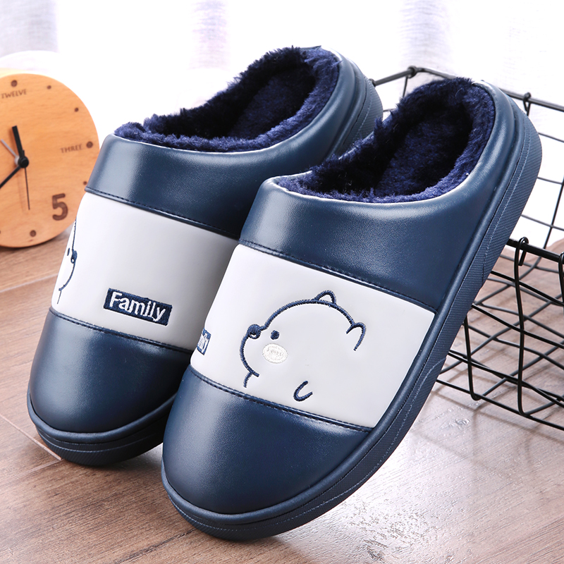 pu新款皮男秋冬季居家室内棉拖鞋女防水冬月子鞋厚底防滑保暖情侣