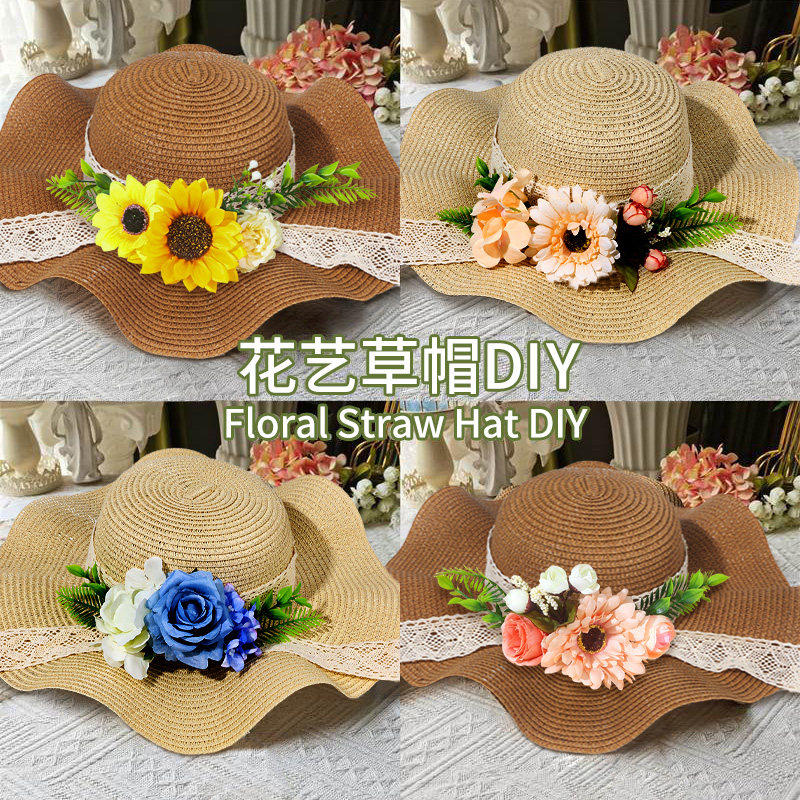 花艺草帽diy手工材料包法式礼帽干花遮阳帽太阳帽母亲节暖场活动