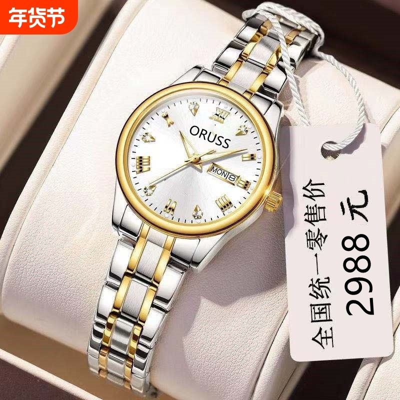 冠琴手表女士防水时尚潮流新款简约休闲女表石英精钢带女手表妈妈