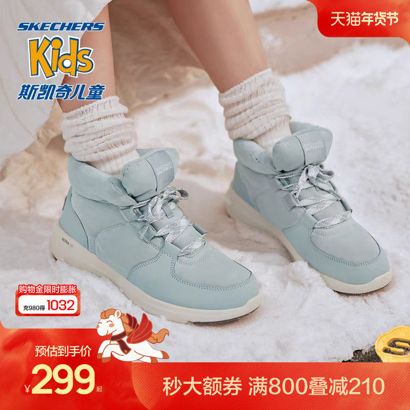 斯凯奇童鞋冬季中大童女鞋魔术贴闪灯鞋高帮休闲鞋加绒保暖雪地靴