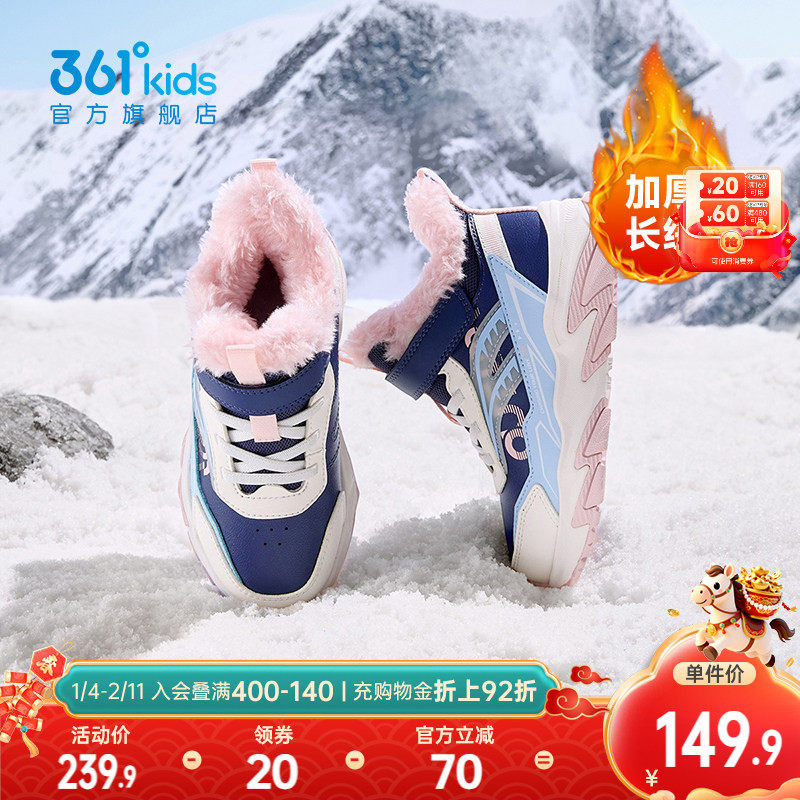 361°童鞋女童棉鞋加厚长绒小童保暖户外鞋2025年冬季新款女鞋子