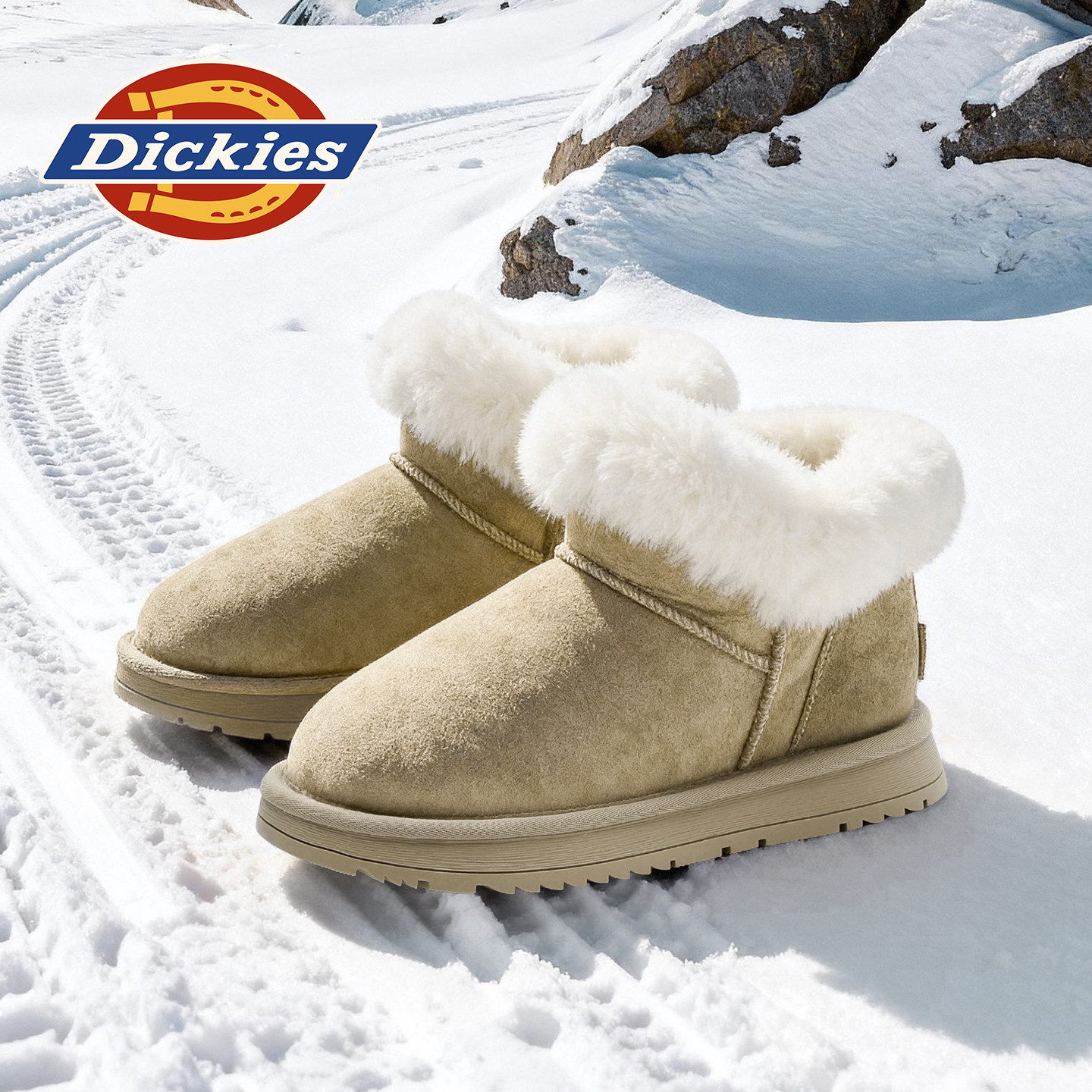 Dickies女童棉鞋冬季新款儿童雪地靴羊皮毛一体男童棉靴保暖女鞋