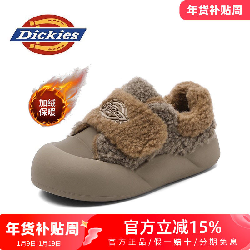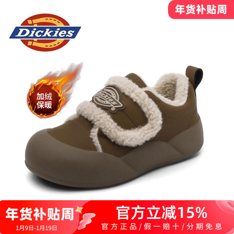Dickies儿童冬季新款加绒童鞋子保暖男女童棉鞋美拉德女鞋面包鞋