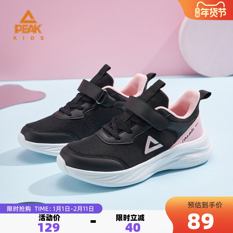 匹克童鞋女童儿童魔术贴跑步鞋秋冬新款女鞋轻便跑鞋学生运动鞋子