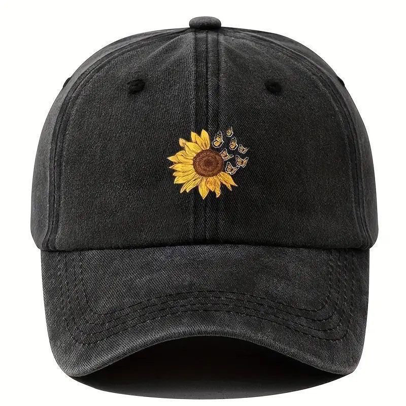 向日葵印花棒球帽男女外贸爆款弯檐可调节鸭舌帽时尚百搭男士帽子