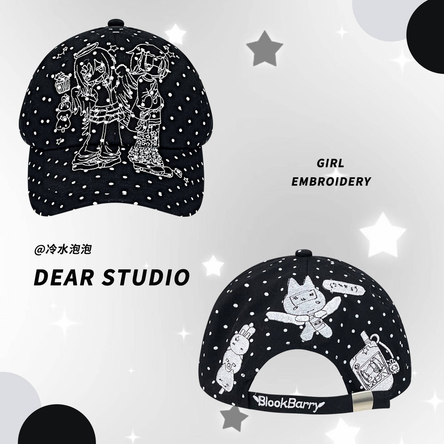 韩系波点女孩刺绣弯檐棒球帽子女甜酷百搭宽帽檐显脸小软顶鸭舌帽