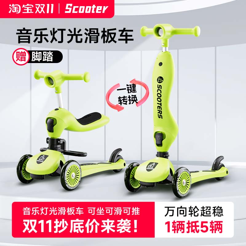 scooter2025新款儿童滑板车1到3岁 三合一可坐可骑音乐灯光滑滑车