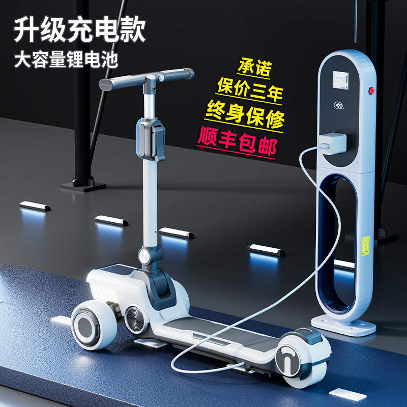 儿童电动滑板车蓝牙音乐灯光三合一男女宝宝1/3到6到12岁以上大童