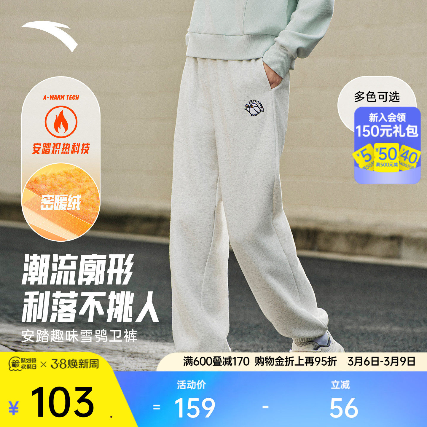 安踏雪鸮卫裤丨休闲束脚裤女新款加绒保暖针织长裤宽松廓形运动裤