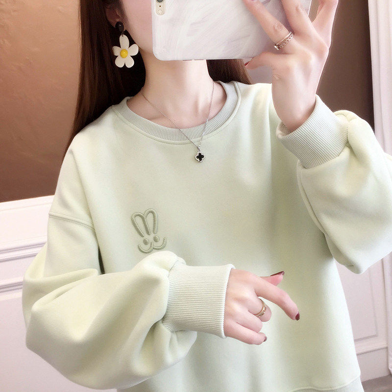 - 韩版宽松加绒卫衣女