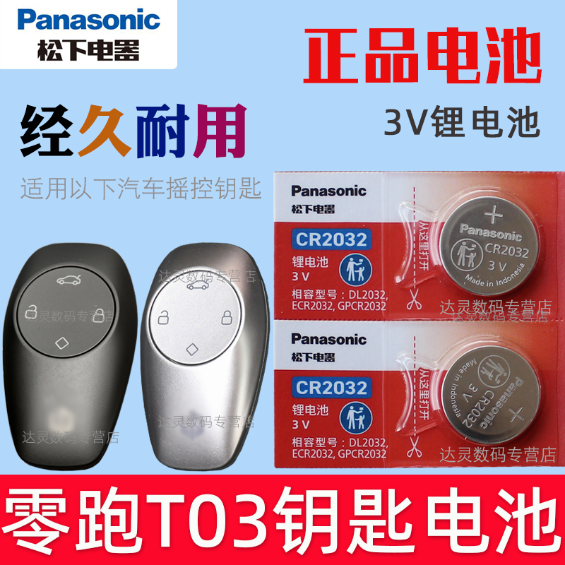 适用 零跑t03钥匙电池 T03汽车遥控器电子CR2032松下原装3V智能摇控专用纽扣电磁 新能源电车钥匙电池