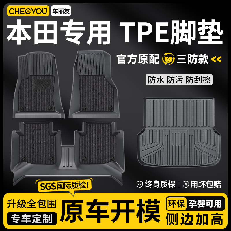 车丽友适用本田雅阁CRV思域皓影XRV缤智英仕派TPE汽车脚垫全包围
